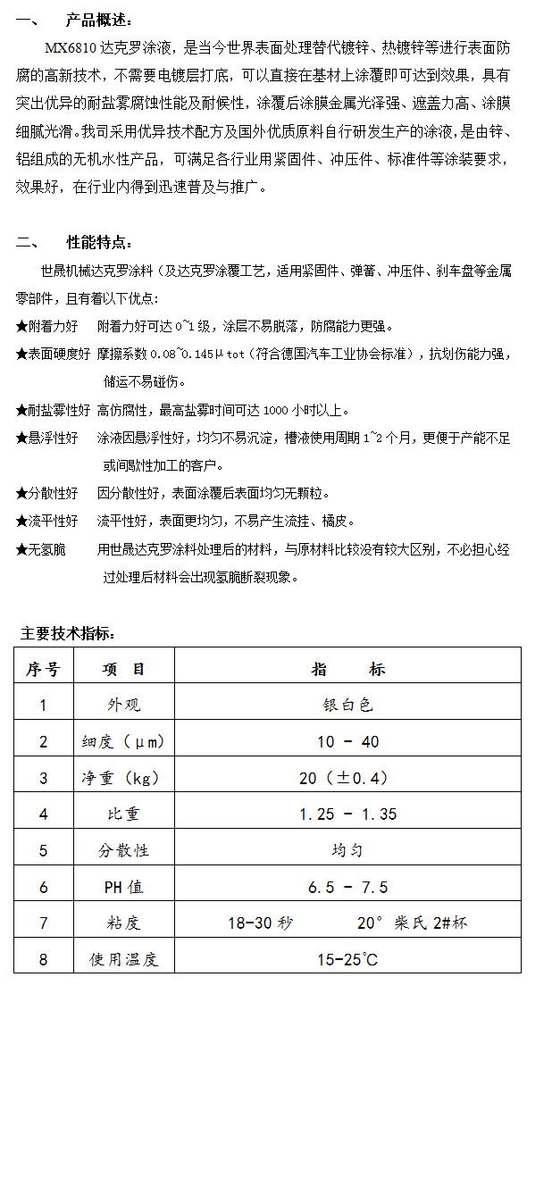 產(chǎn)品名稱:MX6810達(dá)克羅涂液