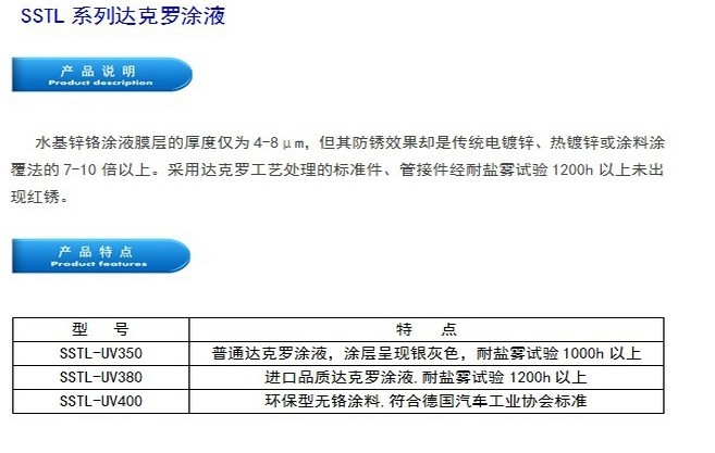 產(chǎn)品名稱:UV350水基鋅鉻達(dá)克羅涂液