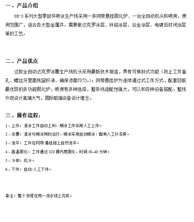 產(chǎn)品名稱(chēng):DX-3系列大型零部件噴涂生產(chǎn)線(xiàn)